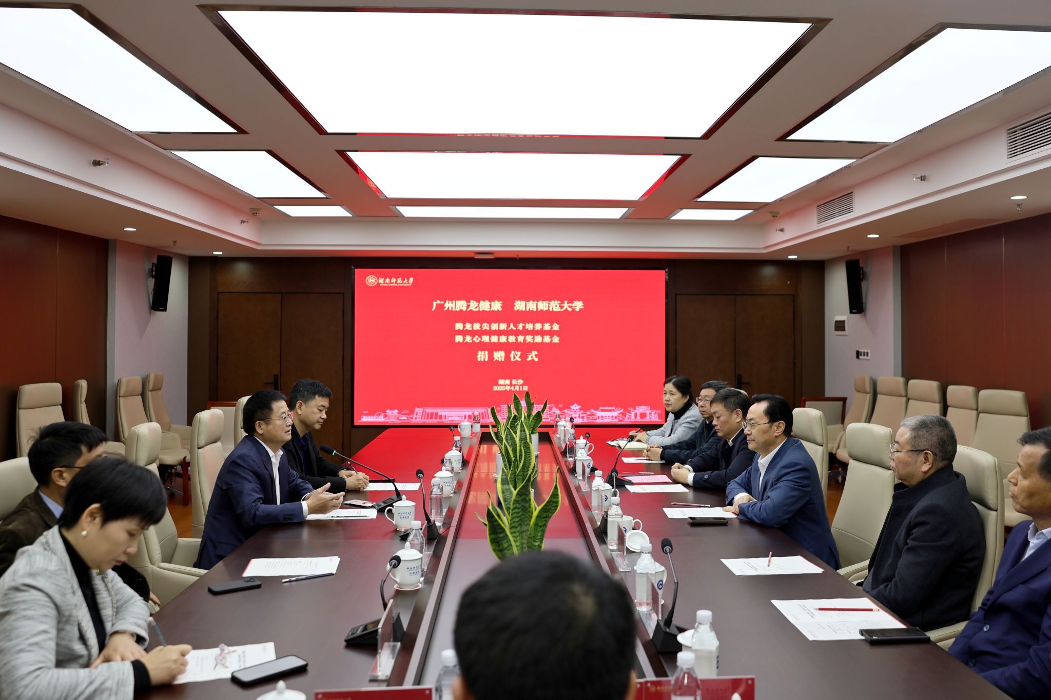 (供稿 校友总会 记者 黄依依 洪通)4月1日上午,“腾龙拔尖创新人才培养基金”“腾龙心理健康教育奖励基金”捐赠仪式在红楼四楼会议室举行。我校85级校友、广州腾龙健康实业股份有限公司董事长彭学文,董事郑捷,85级校友、长沙钦点之路贸易咨询有限公司执行董事盛湘,我校校长、中国工程院院士刘仲华出席会议,会议由副校长王辉主持。彭学文向学校专家团队在项目前期建设上的倾心付出表示感谢,并结合个人创业历程,感悟当今...